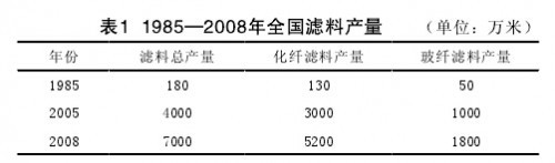 在濾料品種不斷創(chuàng)新的同時,濾料的產(chǎn)量也在飛速發(fā)展。1985—2008年國內(nèi)濾料產(chǎn)量情況見表1。